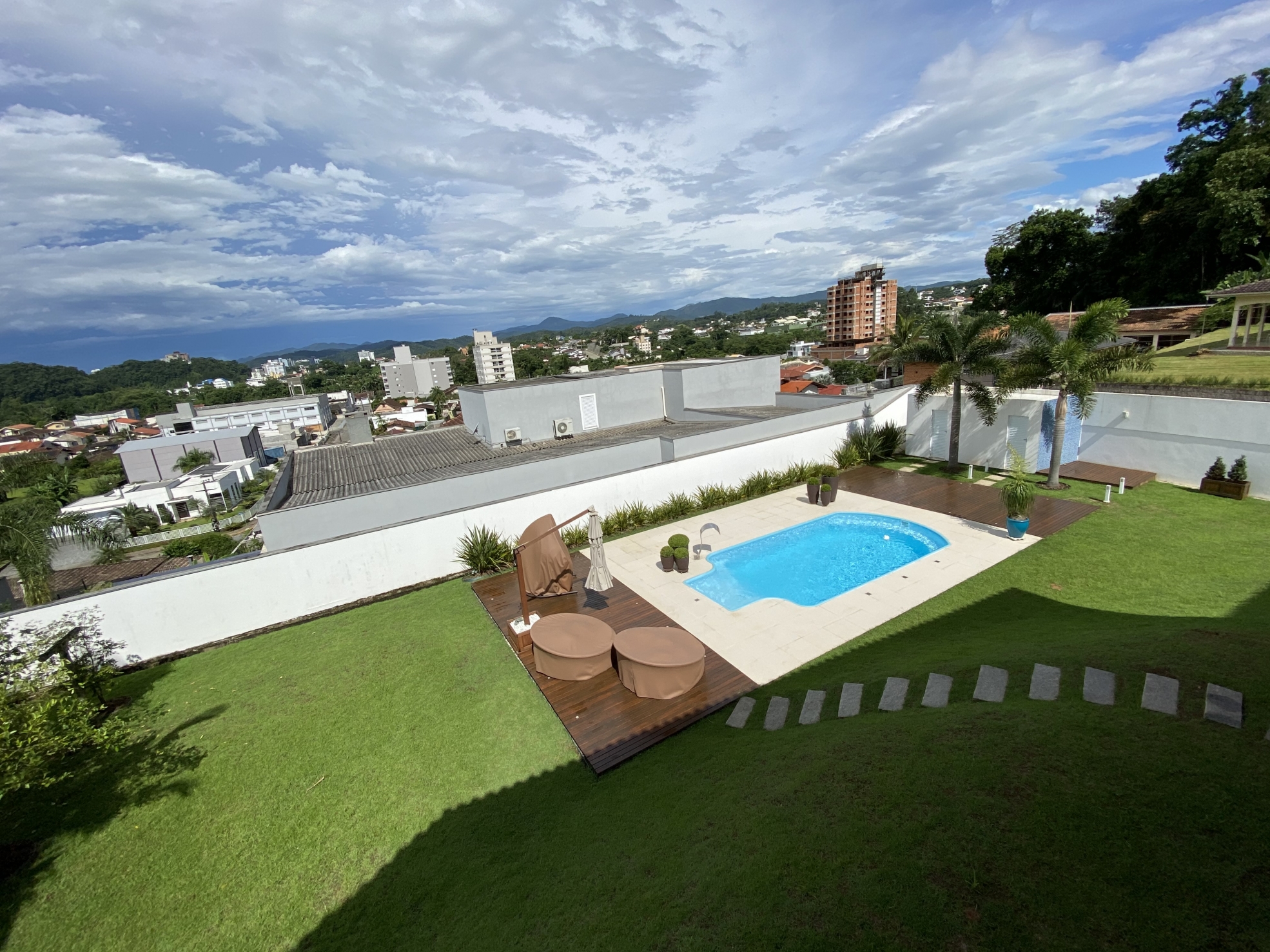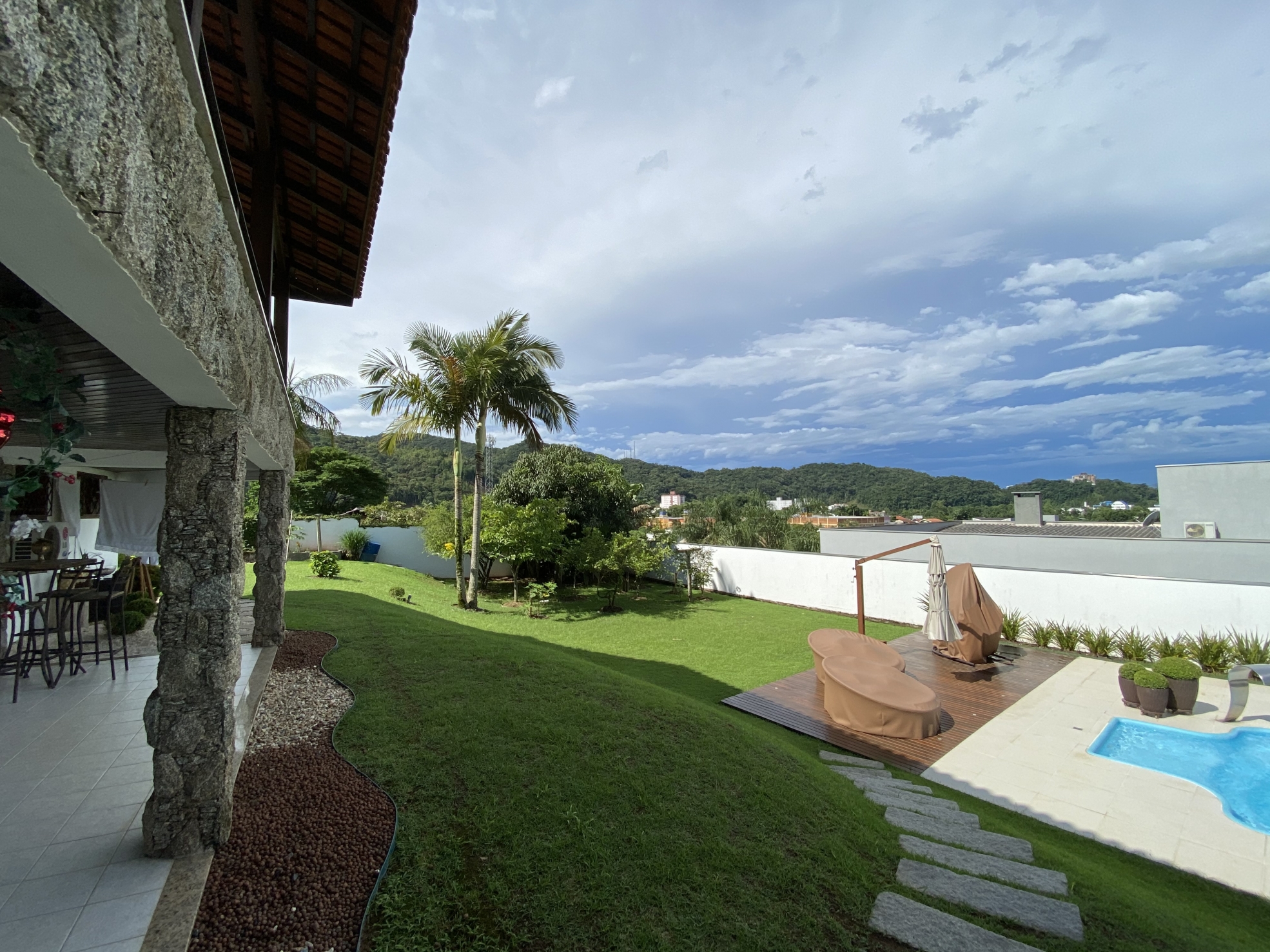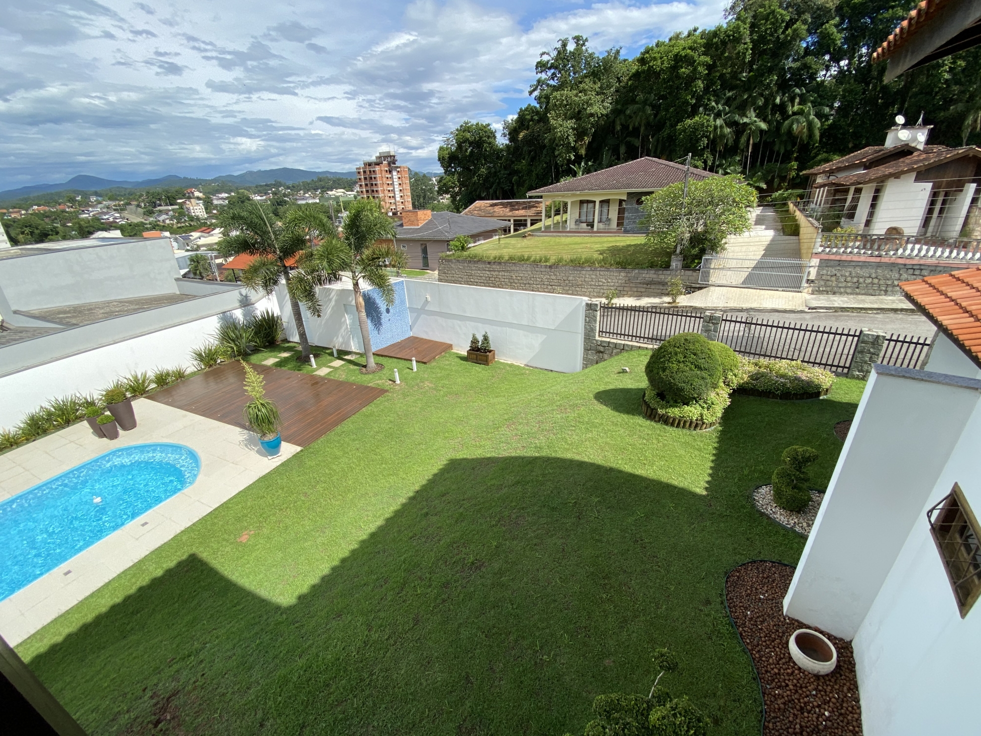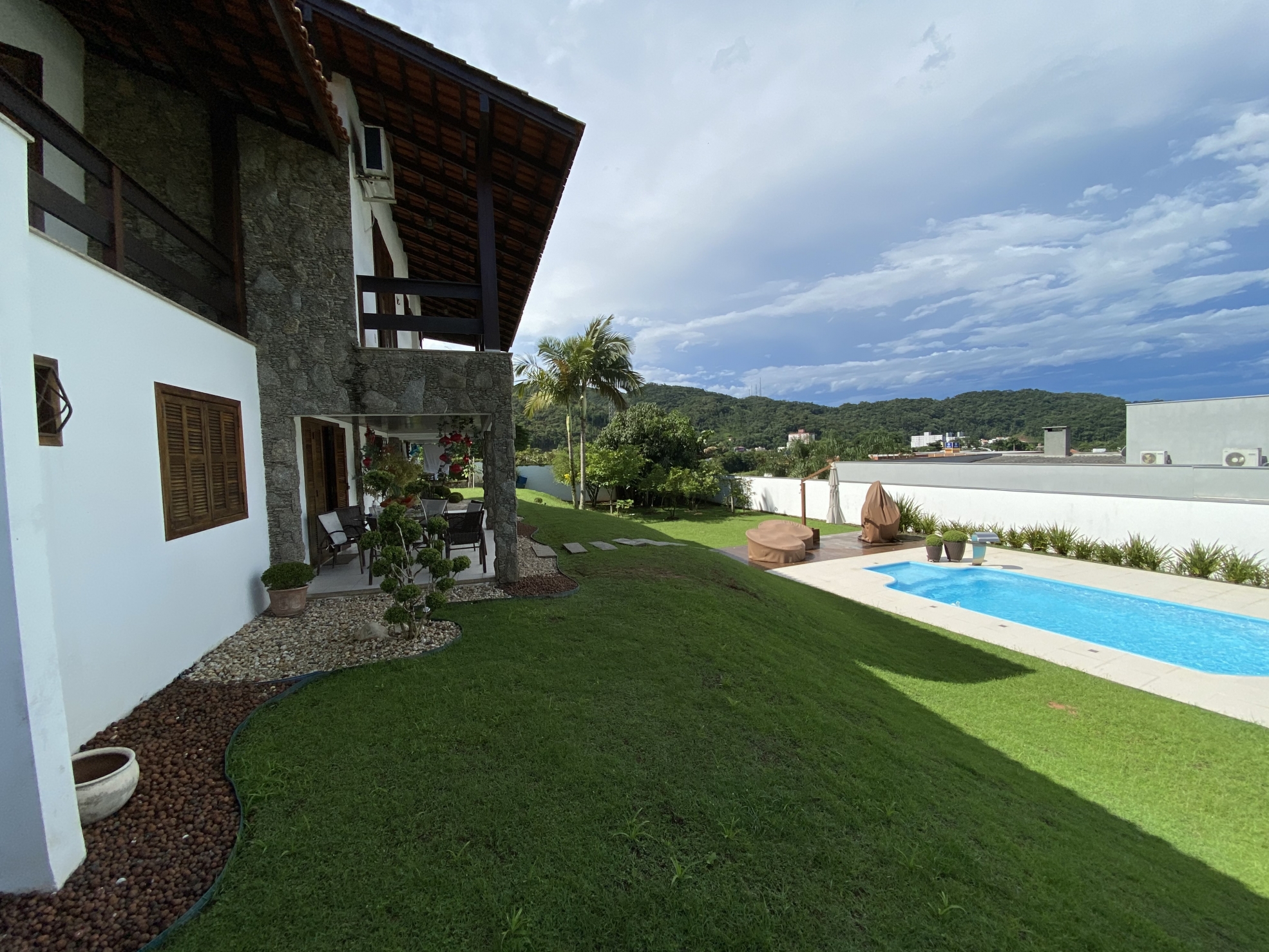 Venda 3.200.000 05/10/2022 Casa em Brusque Guarani, Brusque 3079 R$6.465/m² Descrição Belíssima residência; Bem próxima do centro; Amplos espaços internos; Tudo compreendendo uma área de quase 500m²; Terreno amplo de 1.600m² sendo 40 x 40; Todo murado, jardins, varais, quintal e arborizado; A casa em alvenaria e aberturas de madeira de lei; Possui 4 amplas suítes com vista panorâmica; Com mais um escritório; Despensa e área de serviços espaçosas; Ao todo tem 6 banheiros amplos incluindo lavabo; Salas grandes; Sala de jantar, de estar, de visita, de TV; Garagens grande para 3 veículos; Maravilhosa Piscina com deck; Pátio para estacionamento; Churrasqueira a carvão; Pé direito alto; Piso cerâmico e laminados em madeira; Varanda tipo sacada com vista panorâmica; Portão eletrônico; Toda mobiliada e equipada; Aceita imóvel de menor valor; Escada em madeira maciça; Lugar tranquilo em rua sem saída; Totalmente livre de enchentes; Informações Finalidade Residencial Construção Não informado Piso Cerâmico Área Total 495 m² Dormitórios 5 (4 suítes) Banheiros 6 GARAGEM 3 Anúncio Venda Áreas e Medidas Privativa 495 m² Útil 495 m² Total 495 m² Terreno 1.600 m² Detalhes adicionais Código 3079 Valor de Venda 3.200.000,00 Tipo Casa Mobiliado Sim Estágio da Obra Pronto pra morar Agenciamento 04/02/2021 Localização Guarani Ver Mapa