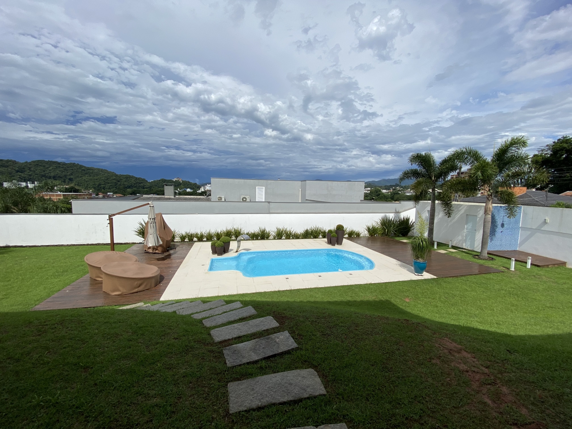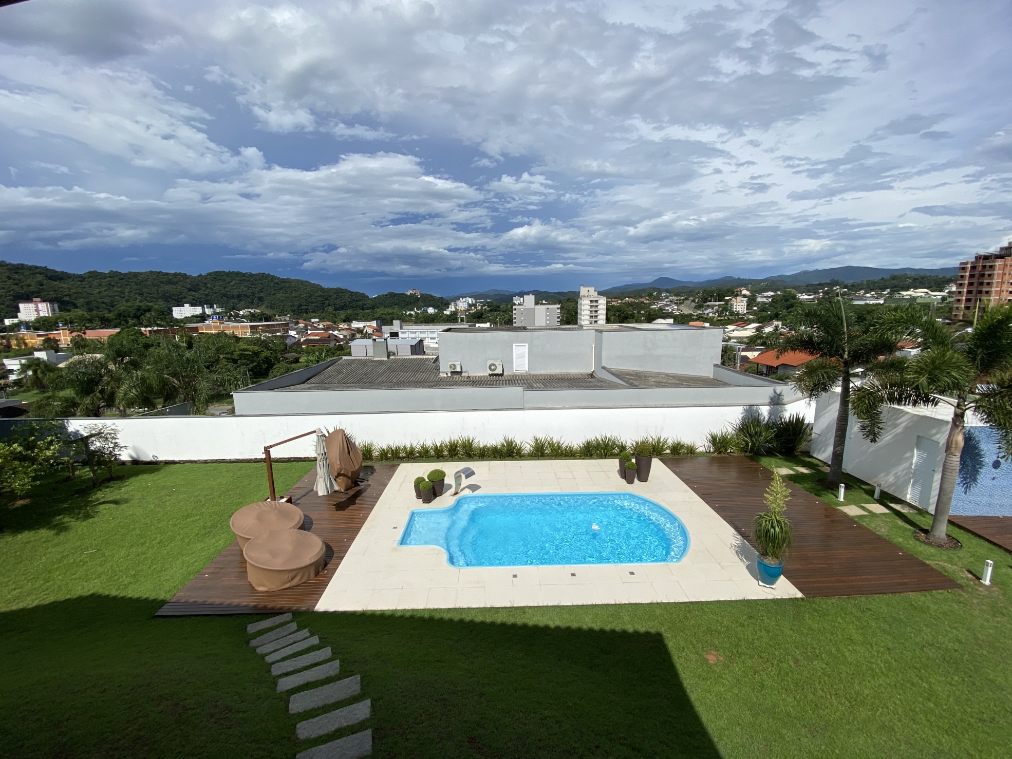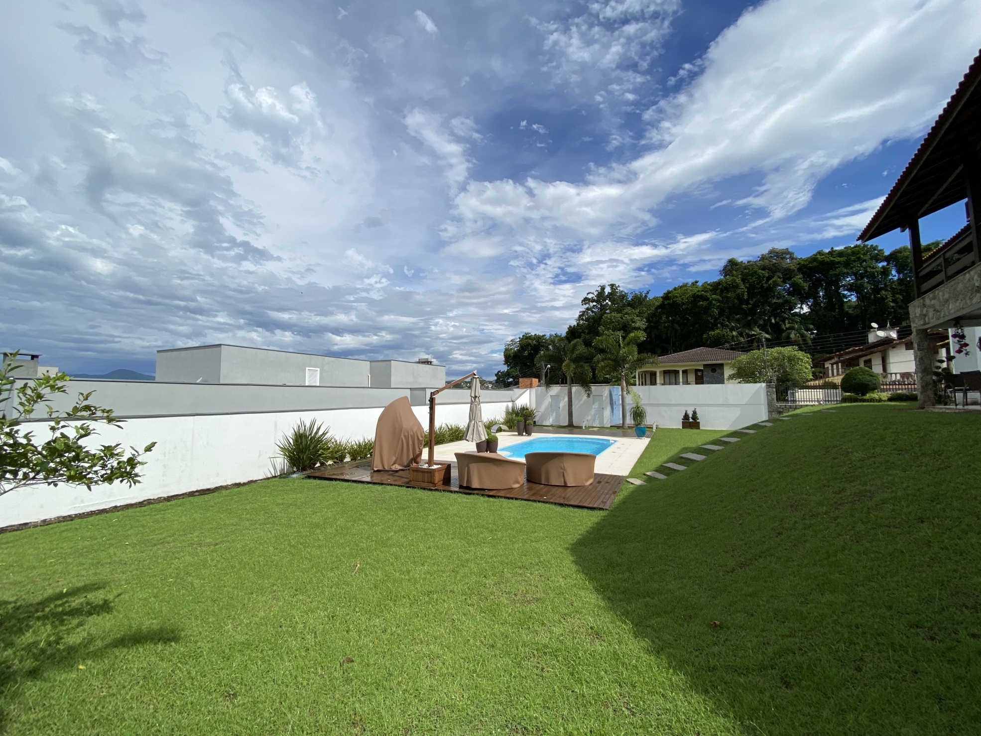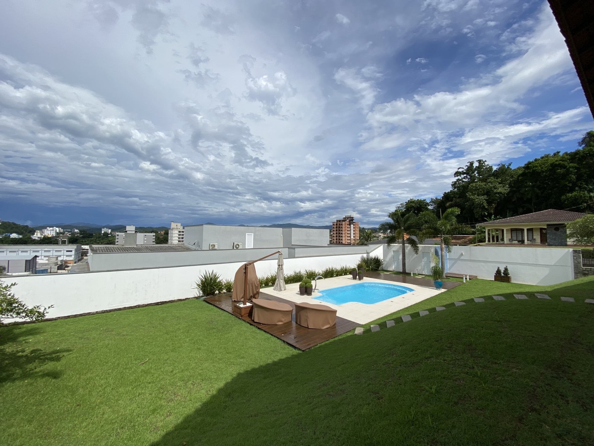 Venda 3.200.000 05/10/2022 Casa em Brusque Guarani, Brusque 3079 R$6.465/m² Descrição Belíssima residência; Bem próxima do centro; Amplos espaços internos; Tudo compreendendo uma área de quase 500m²; Terreno amplo de 1.600m² sendo 40 x 40; Todo murado, jardins, varais, quintal e arborizado; A casa em alvenaria e aberturas de madeira de lei; Possui 4 amplas suítes com vista panorâmica; Com mais um escritório; Despensa e área de serviços espaçosas; Ao todo tem 6 banheiros amplos incluindo lavabo; Salas grandes; Sala de jantar, de estar, de visita, de TV; Garagens grande para 3 veículos; Maravilhosa Piscina com deck; Pátio para estacionamento; Churrasqueira a carvão; Pé direito alto; Piso cerâmico e laminados em madeira; Varanda tipo sacada com vista panorâmica; Portão eletrônico; Toda mobiliada e equipada; Aceita imóvel de menor valor; Escada em madeira maciça; Lugar tranquilo em rua sem saída; Totalmente livre de enchentes; Informações Finalidade Residencial Construção Não informado Piso Cerâmico Área Total 495 m² Dormitórios 5 (4 suítes) Banheiros 6 GARAGEM 3 Anúncio Venda Áreas e Medidas Privativa 495 m² Útil 495 m² Total 495 m² Terreno 1.600 m² Detalhes adicionais Código 3079 Valor de Venda 3.200.000,00 Tipo Casa Mobiliado Sim Estágio da Obra Pronto pra morar Agenciamento 04/02/2021 Localização Guarani Ver Mapa