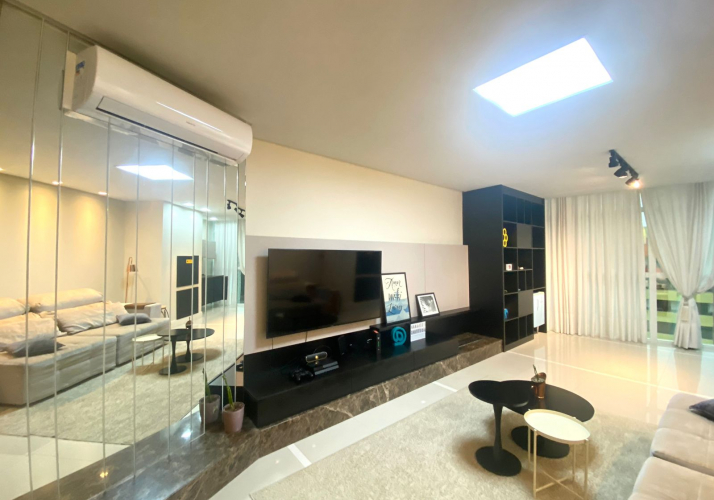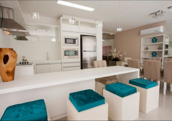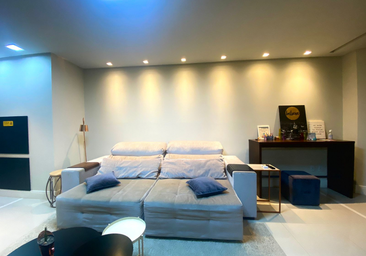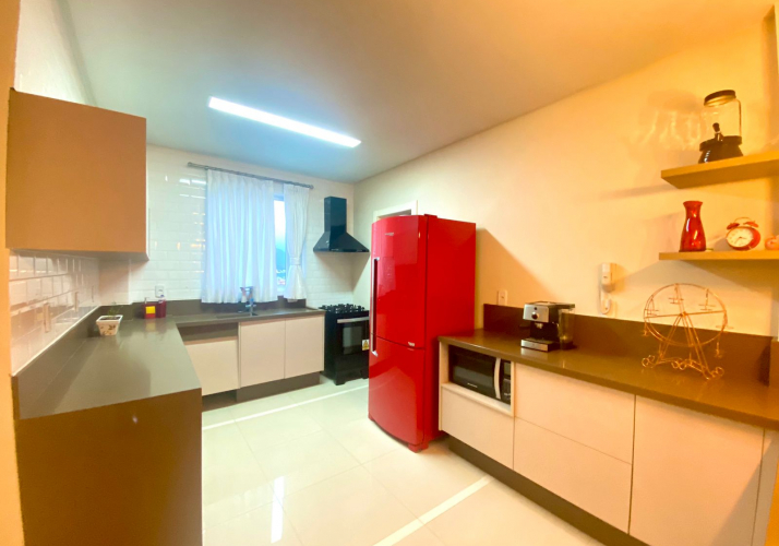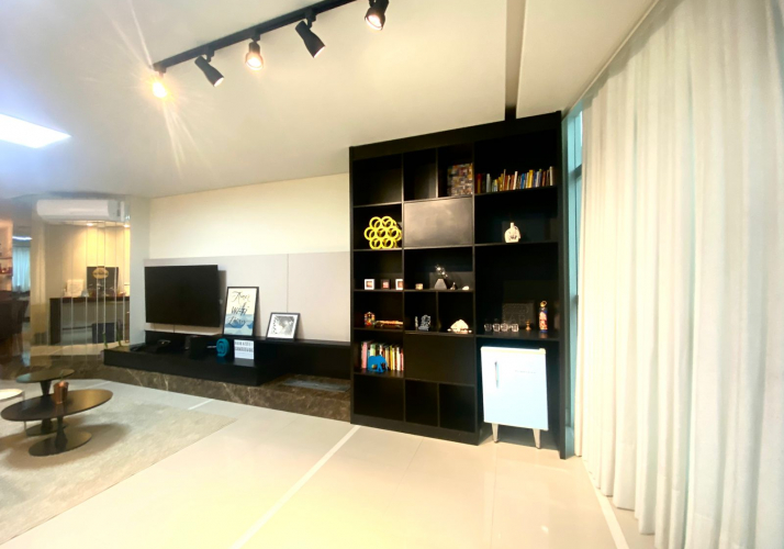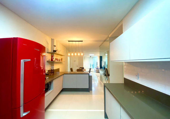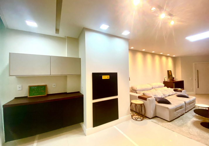 Amplo living integrado com cozinha;